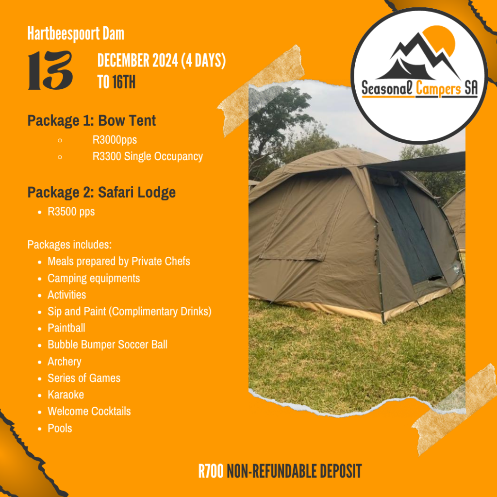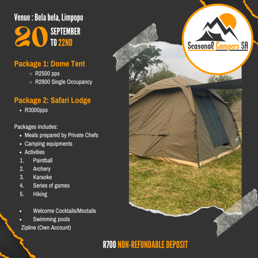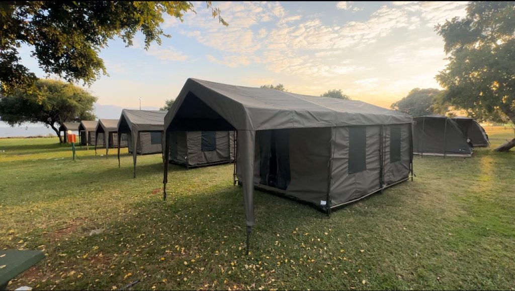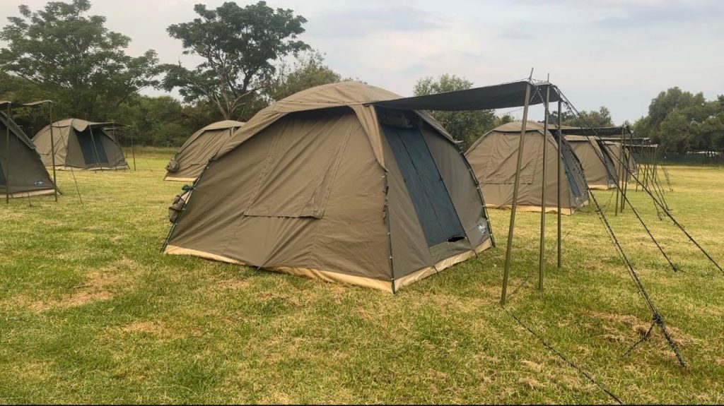 Size 3×3 Canvas Tent that can accommodate up to three persons. The Bow tent comes with double inflatable mattress, rechargeable light, sheet covers.